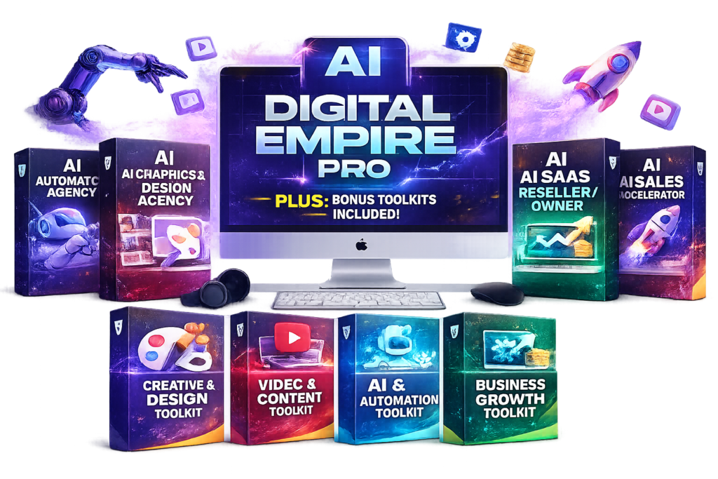 The step-by-step beginner-friendly masterclass to becoming an AI Digital Empire PRO and learning to launch 5 full-stack AI businesses—even if you’re a complete beginner.