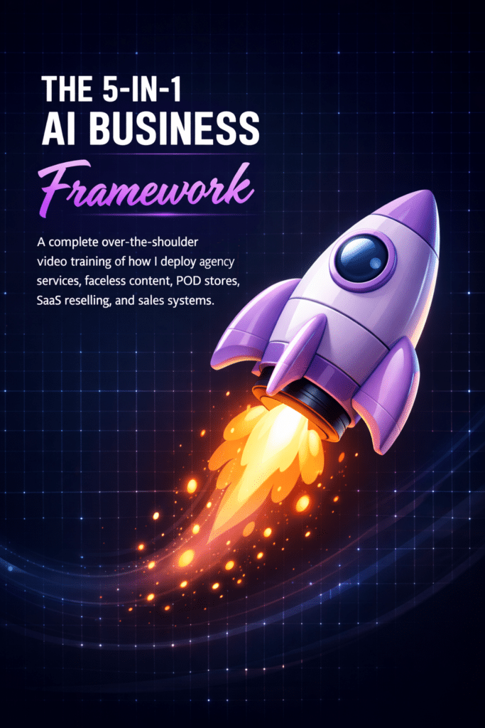 A complete step-by-step masterclass + 500GB asset library that shows you how to launch 5 profitable AI businesses (agencies, YouTube, POD, SaaS, sales). Watch over-the-shoulder videos, get done-for-you assets, and follow roadmaps to your first revenue.
